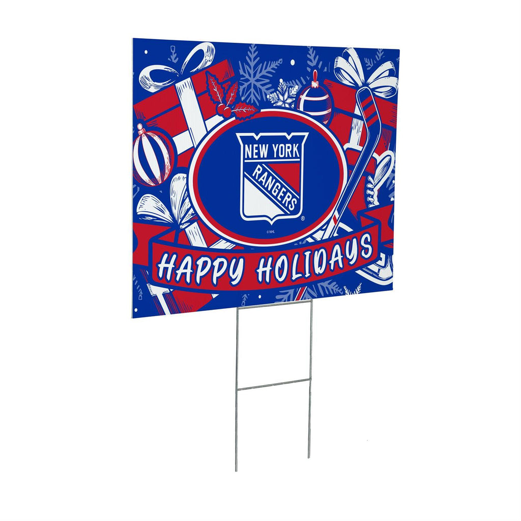 Showcase your team pride this holiday season with the New York Rangers Yard Sign. Perfect for any fan, this vibrant garden sign features festive holiday elements alongside the iconic team logo. Made from durable materials, it withstands winter weather while adding a touch of cheer to your outdoor space. Measuring 24 inches by 18 inches, it's the ideal size to make a statement on your lawn or garden. Easy to install and designed for long-lasting display, this sign is a must-have for any Rangers supporter.