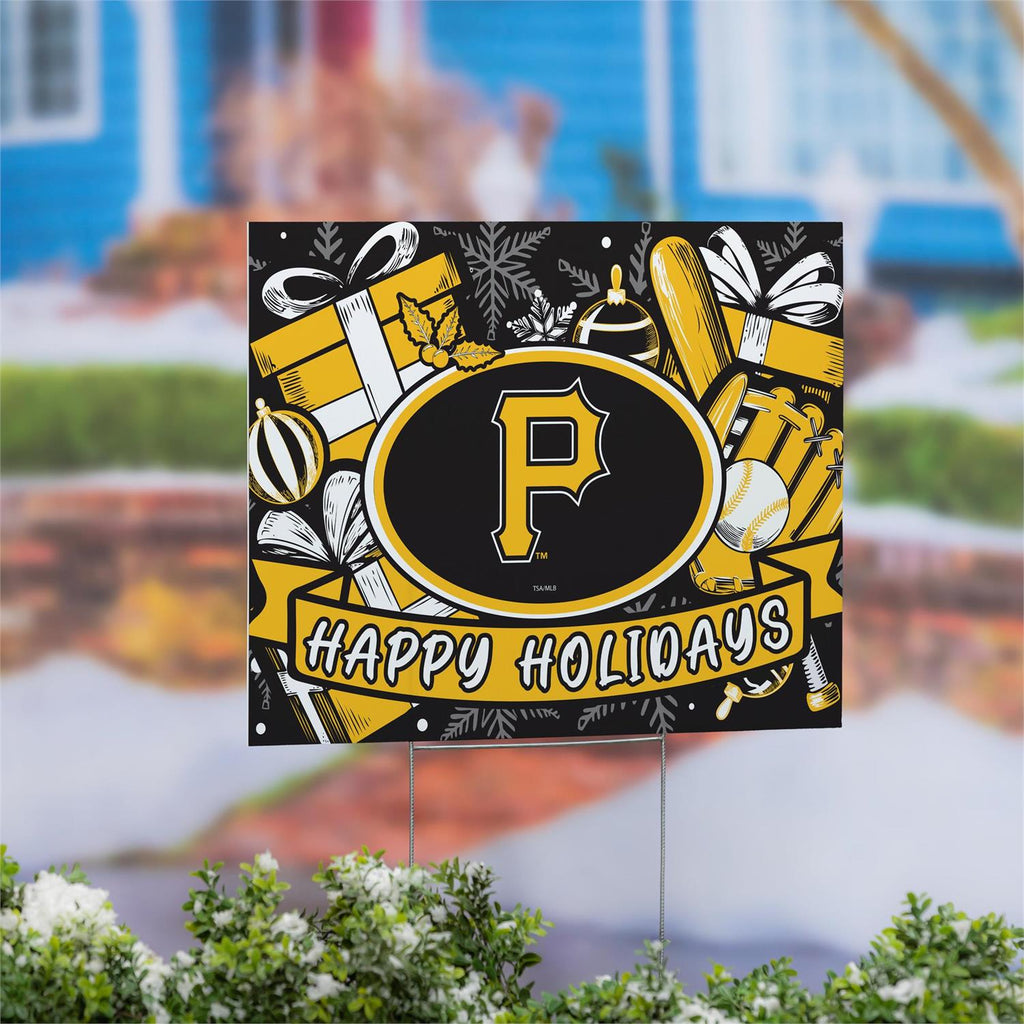 Celebrate the holiday season with a touch of team spirit using the Pittsburgh Pirates Yard Sign. Perfect for fans, this festive sign features the iconic team logo surrounded by holiday-themed graphics, making it an ideal decoration for your garden or yard. Measuring 24 inches in length and 18 inches in width, it's the perfect size to make a statement without overwhelming your outdoor space. The durable material ensures it withstands winter weather, while the vibrant colors will brighten up any holiday display. Show off your Pirates pride and spread holiday cheer in your neighborhood with this eye-catching sign.
