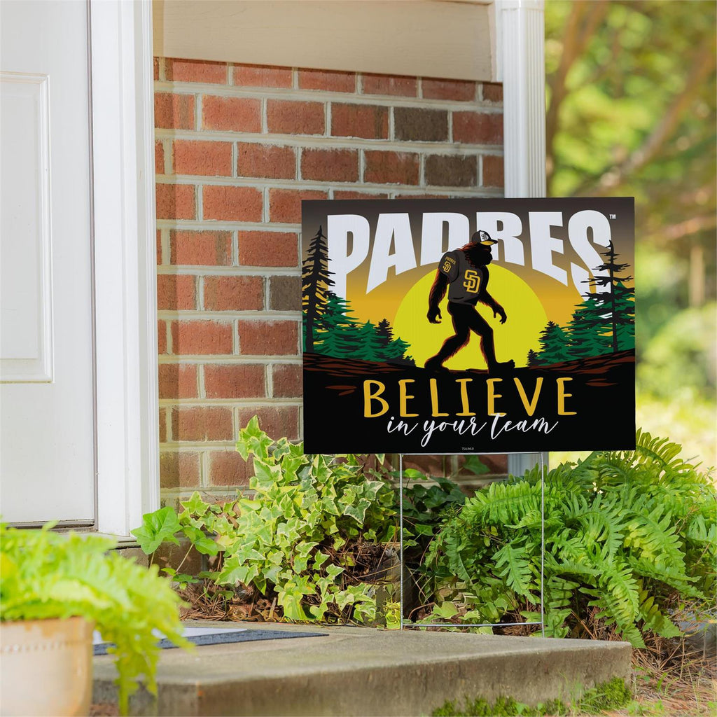Showcase your team spirit with the San Diego Padres Bigfoot Yard Sign. Perfect for fans who want to add a fun and unique element to their garden or yard, this sign features a whimsical design of Bigfoot proudly supporting the Padres. Measuring 24 inches by 18 inches, it's an eye-catching display that’s sure to delight fellow fans and neighbors alike. Made from durable materials, this sign is designed to withstand outdoor conditions, making it a great addition to your seasonal décor. Let everyone know you believe in your team with this playful and bold yard sign.