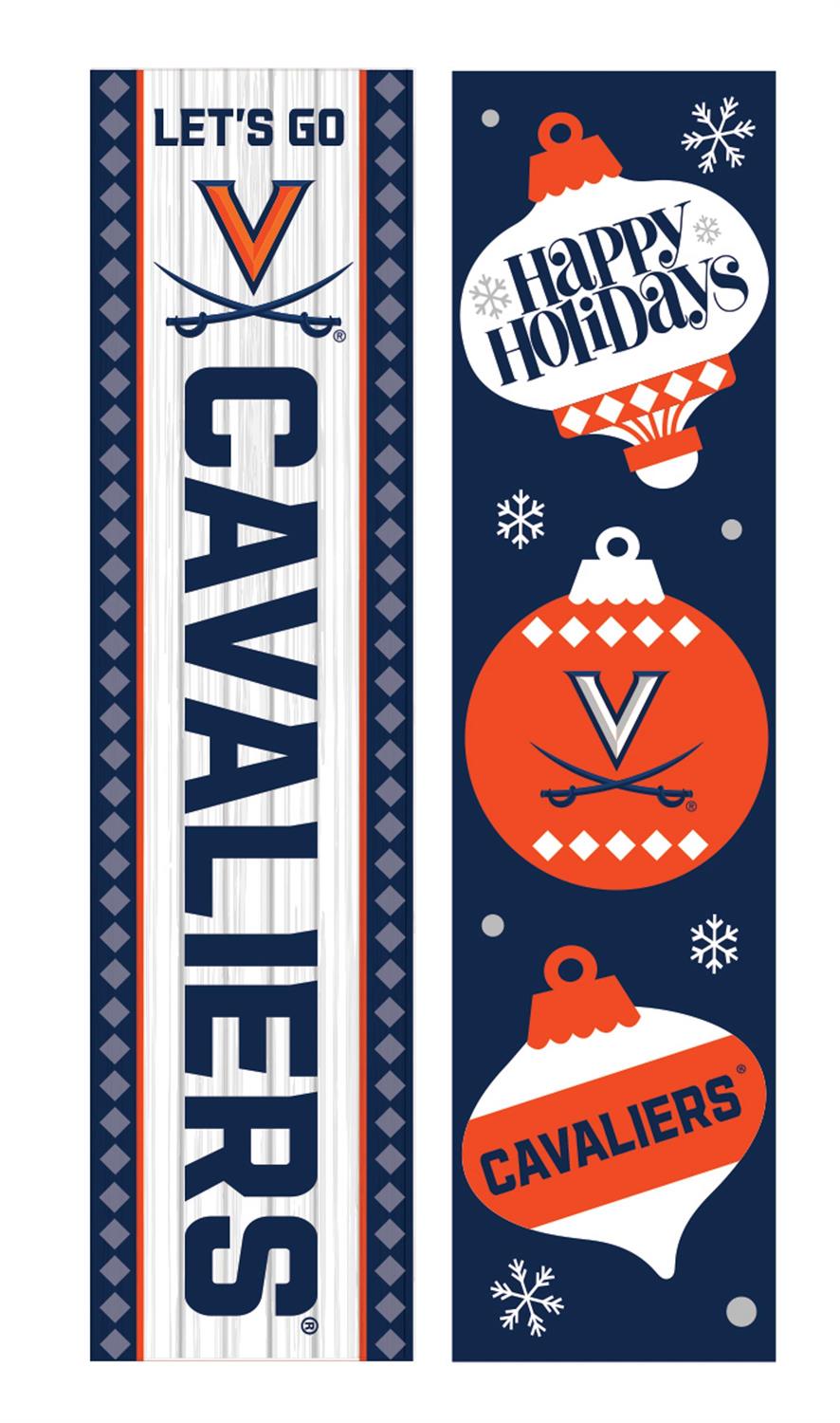 Celebrate school spirit and festive charm with this 46" double-sided porch leaner. Perfect for University of Virginia fans, this sign features bold team colors and graphics, making it a standout addition to your holiday décor. The leaner's narrow design allows it to fit seamlessly on porches or entryways, adding a personalized touch to your home. Made from durable materials, it promises to withstand seasonal weather conditions while maintaining its vibrant appearance. Whether you're gearing up for game day or spreading holiday cheer, this leaner is a perfect fit.