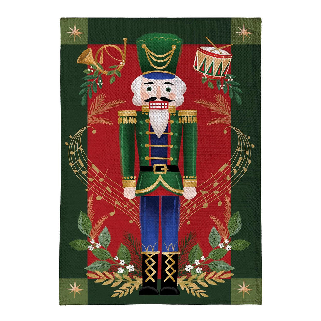 Celebrate the holiday season with the Joyful Traditions Double Sided Burlap House Flag. Measuring 28 by 44 inches, this vibrant flag features a classic nutcracker design that adds festive charm to any home. Made from durable burlap, it withstands outdoor conditions while maintaining its bright colors. The double-sided design ensures visibility from all angles, making it perfect for greeting guests or adding seasonal flair to your garden or porch. Easy to hang and versatile, this flag is a delightful addition to your holiday décor collection.