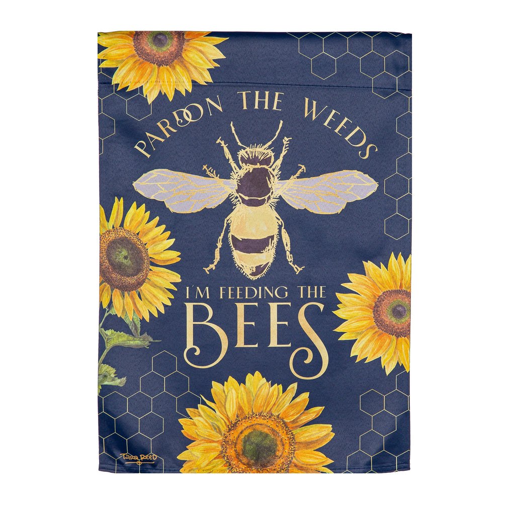 Brighten up your garden this spring with the 'Pardon the Weeds I'm Feeding The Bees' suede garden flag. Featuring vibrant sunflowers and a charming bee design, this flag adds a warm touch to any outdoor space.