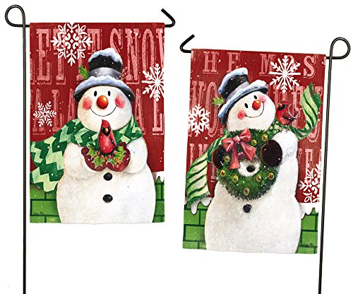 Enhance your winter garden décor with this charming Brick Snowmen Garden Suede Flag. Featuring an adorable snowman adorned with a festive scarf and holding a cheerful cardinal, this flag brings warmth and joy to your outdoor space. Made from durable suede, it withstands the elements while maintaining its vibrant colors. The playful snowflakes and bold red background add a touch of holiday spirit, making it a delightful addition to your seasonal decorations. Measuring 12.5 x 18 inches, it's the perfect size to make a statement without overwhelming your garden.