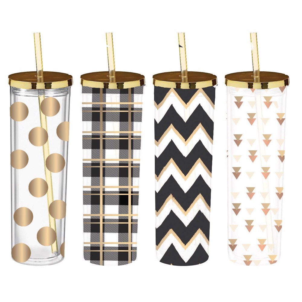 Unique: This stunning set features four metal skinny tumblers, a great addition to your home.