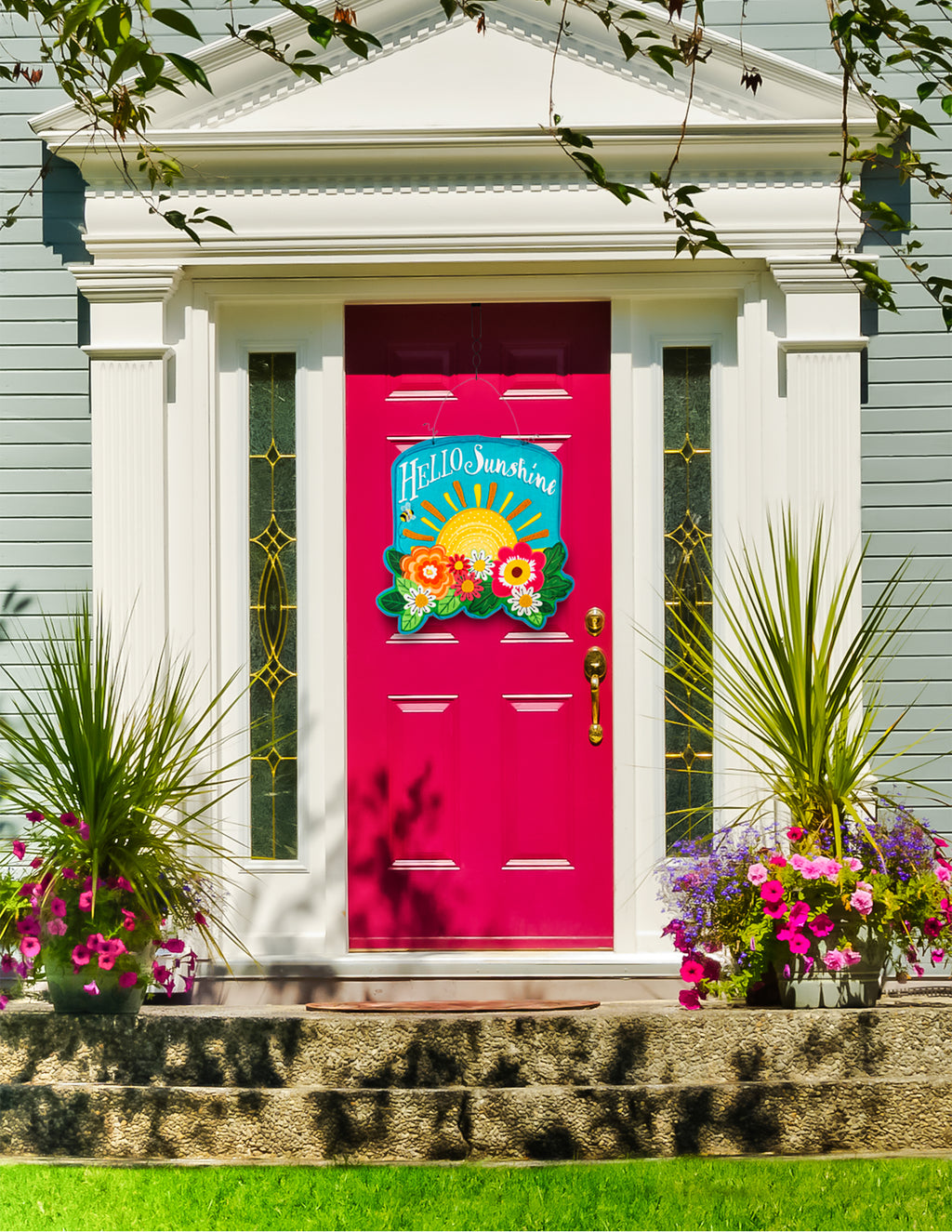 Evergreen decorative door decor are made of high quality, poly-blend felt or burlap with weatherproof fabric. Door decor is built with tight & detailed stitching for durability. They can be easily hung over the door hangers or wreath hangers and comes with a grosgrain ribbon.
