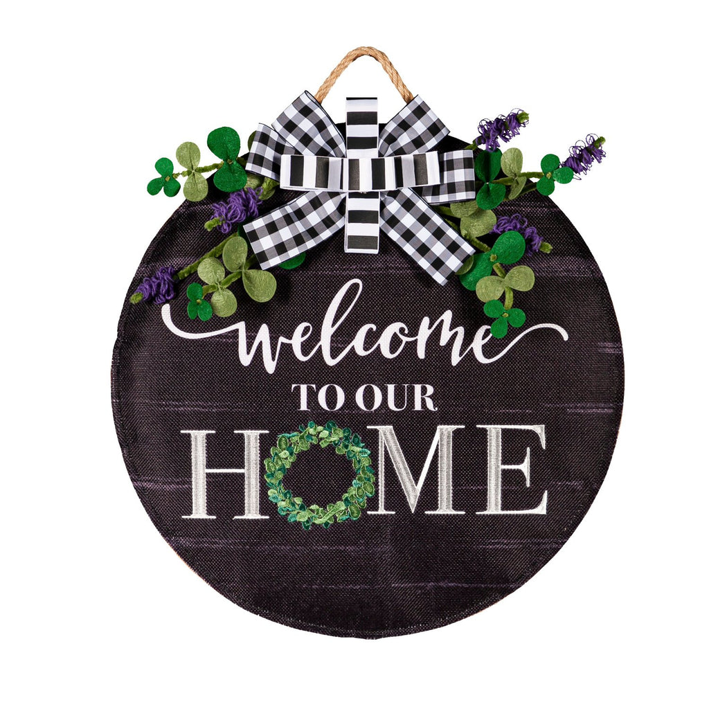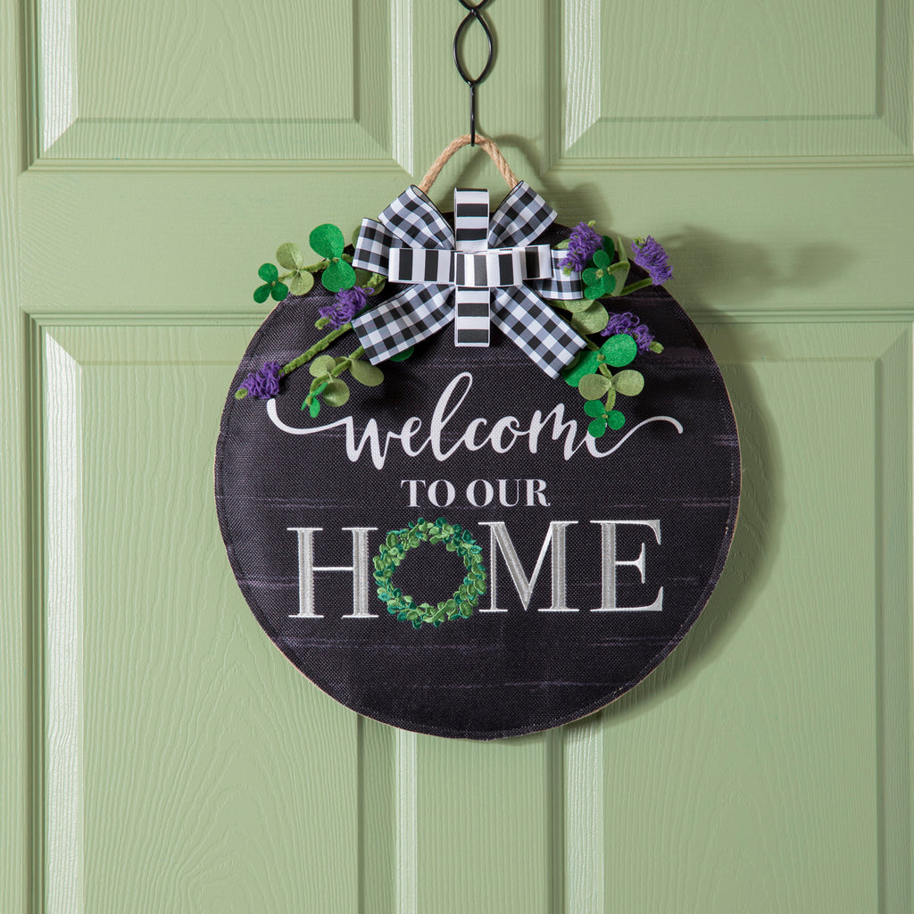 Evergreen decorative door decor are made of high quality, poly-blend felt or burlap with weatherproof fabric. Door decor is built with tight & detailed stitching for durability. They can be easily hung over the door hangers or wreath hangers and comes with a grosgrain ribbon.