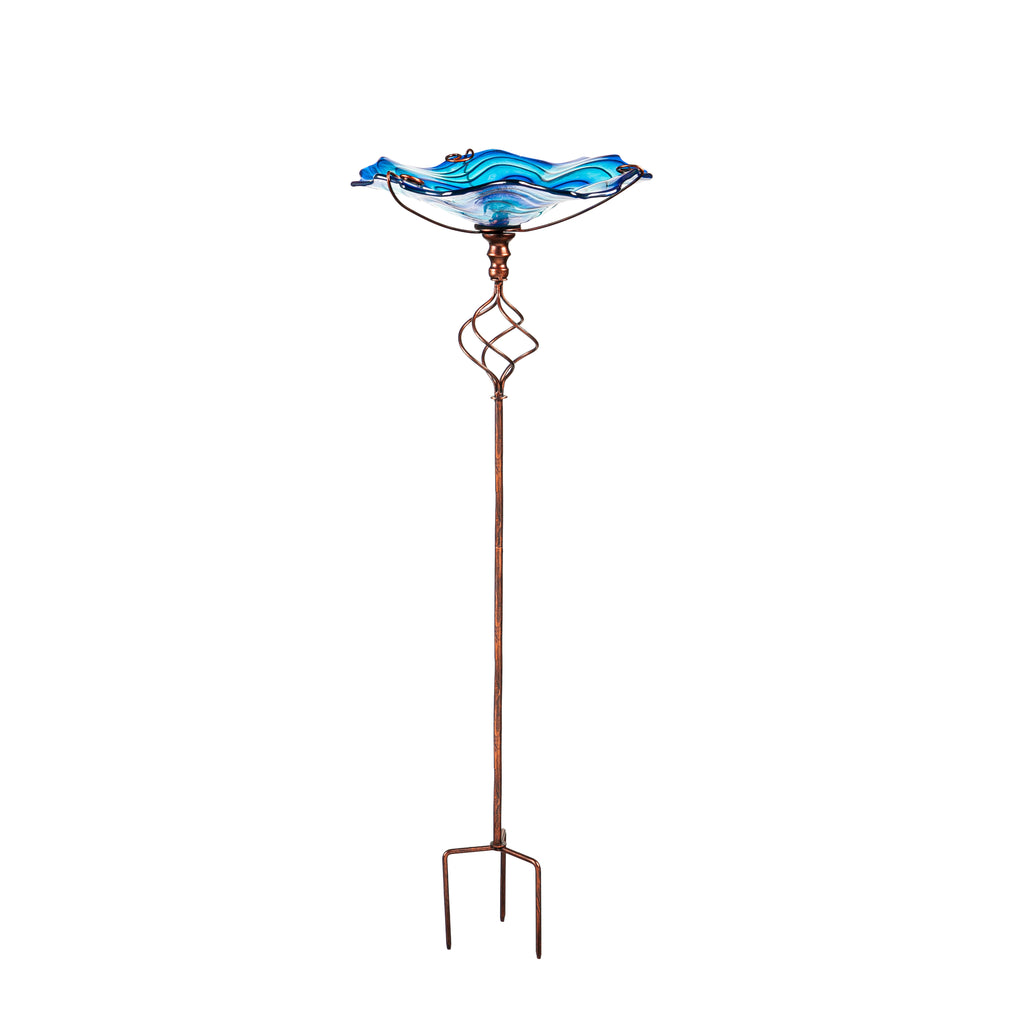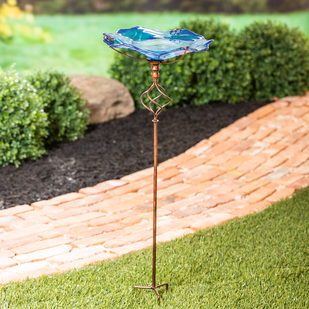Designed with your spring garden in mind, this glass birdbath bowl features embossed and hand-painted glass artistry. Made of thick, sturdy glass, this bowl can be paired with an outdoor stand, sold separately, and used as a birdbath or feeder for your garden.