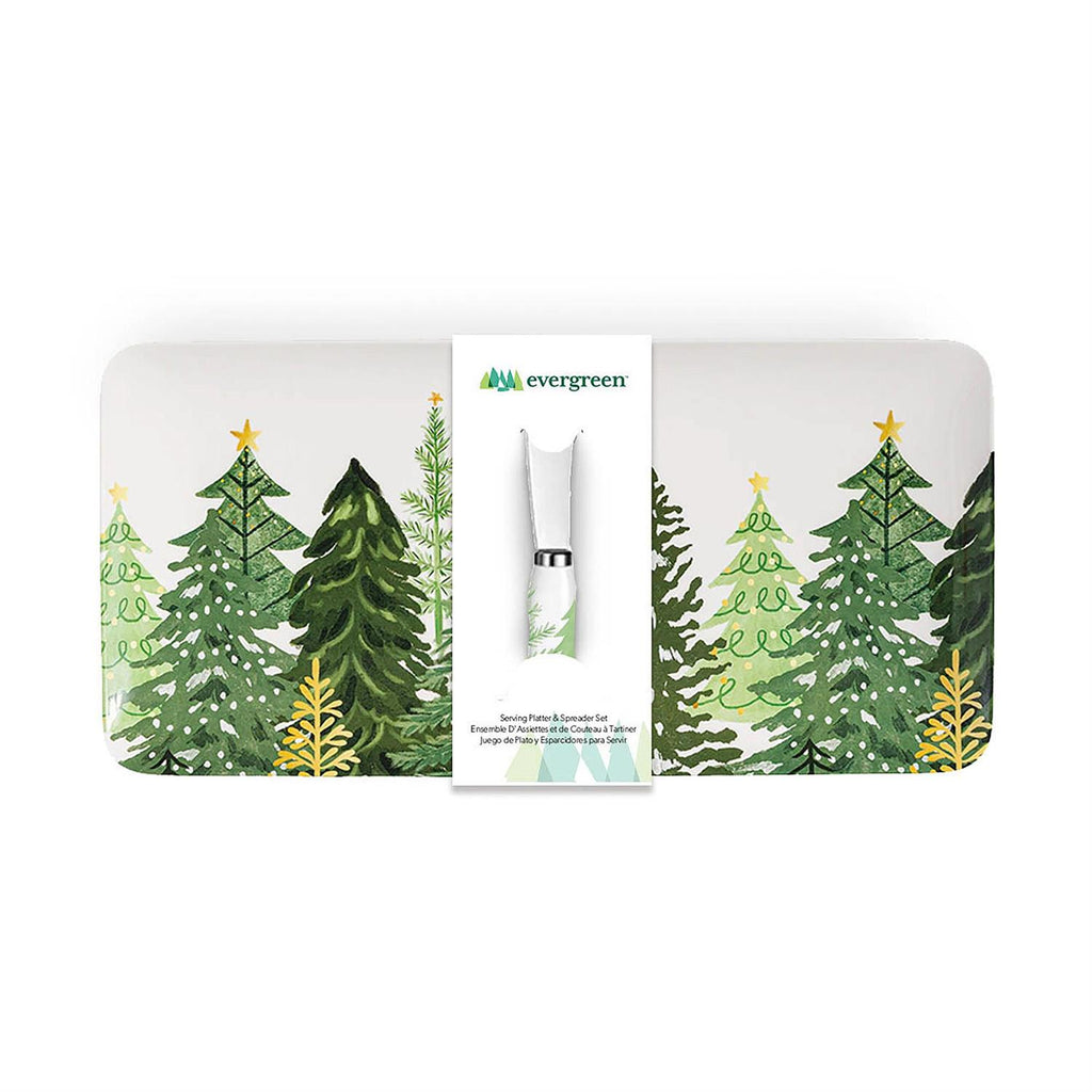 Elevate your holiday gatherings with the Shades of Green Serveware Rectangular Melamine Platter with Spreader Set. Measuring 14.25 inches in length, this platter features a charming forest-themed design, perfect for festive occasions. Crafted from durable melamine, it offers a lightweight yet sturdy option for serving appetizers, cheeses, and desserts. The included spreader complements the set, making it convenient for spreading soft cheeses or pâtés. Enhance your seasonal table setting with this elegant and functional platter, ideal for both indoor and outdoor entertaining.