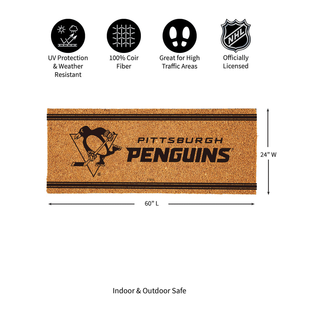 Show your team spirit with the Pittsburgh Penguins Extra Large Coir Mat, perfect for any fan's entryway. Made from durable coir, this mat is designed to withstand heavy foot traffic while keeping your home clean.