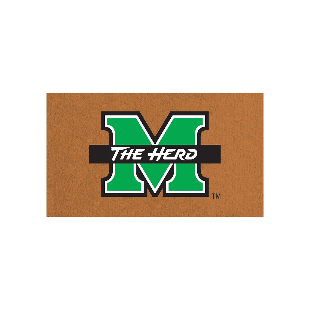 Show your school spirit with this durable coir mat featuring the Marshall University logo, perfect for welcoming guests to your home.