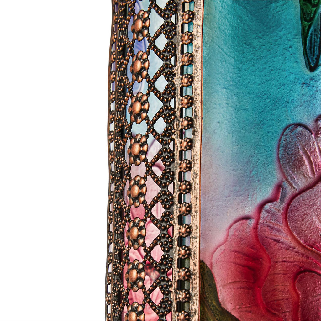 - Colorful stained glass design with hummingbirds