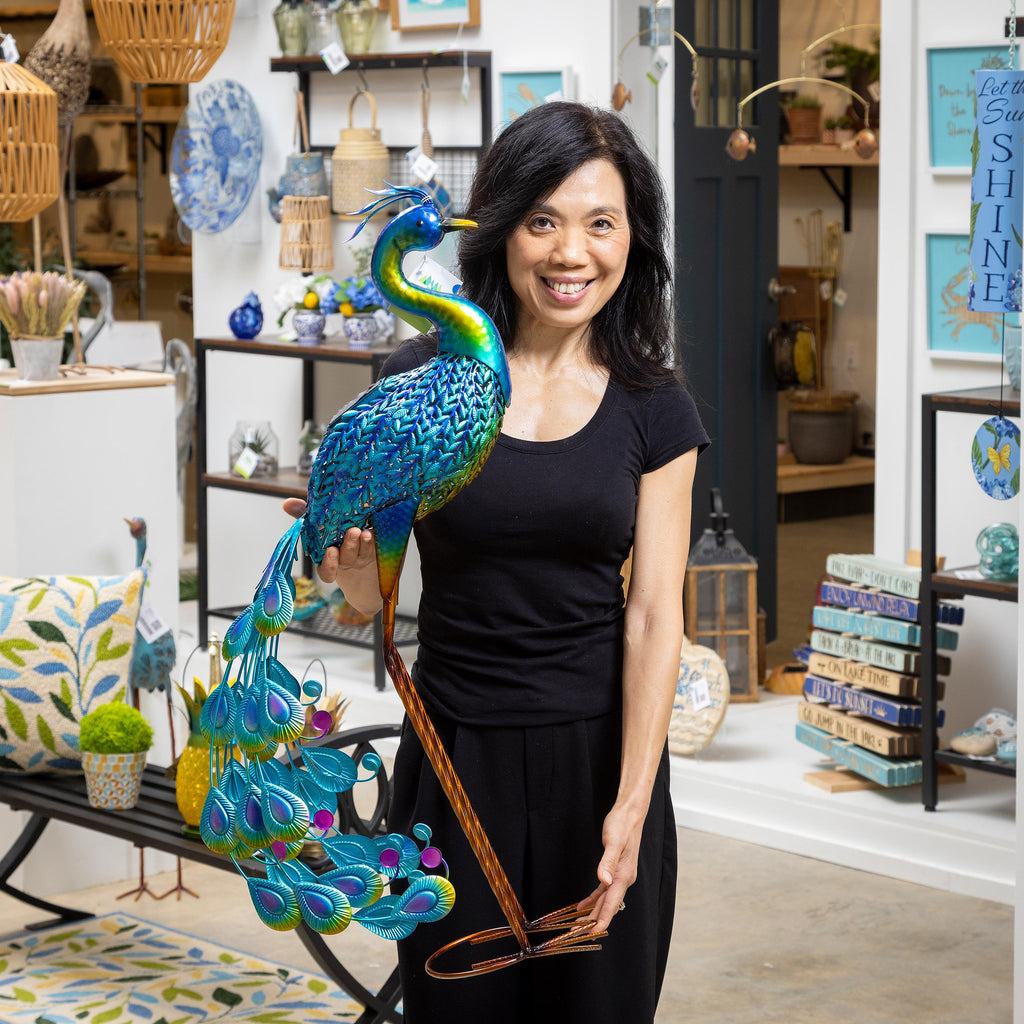 - Vibrant peacock design with detailed craftsmanship adds elegance to any garden setting.