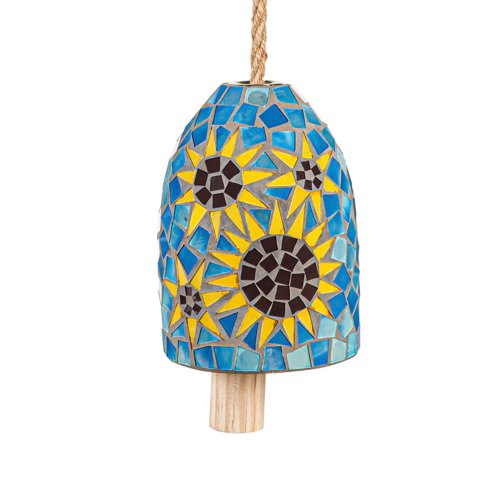 A wooden clapper creates a gorgeous chime as it rings against the hand crafted glass