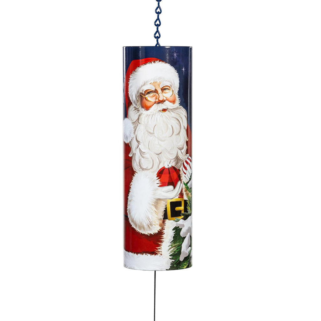 Elevate your holiday decor with this Traditional Santa Garden Accent Wind Chime. Standing at a striking 36 inches high, this eye-catching piece features a beautifully detailed Santa Claus motif on a durable cylinder design. Perfect for adding a festive touch to any outdoor space, the gentle chimes create a soothing melody as they sway in the breeze. Crafted to withstand the elements, it's an ideal addition to your winter garden or patio, bringing seasonal cheer to your home.