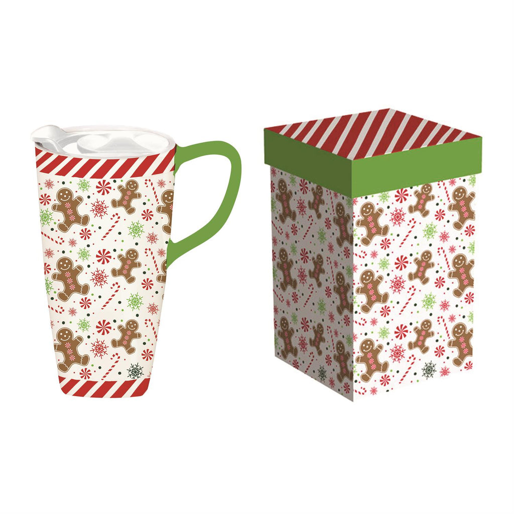 Ceramic On the GoTravel Cup, 17 oz., w/ Box, Christmas Traditions, Gingerbread
