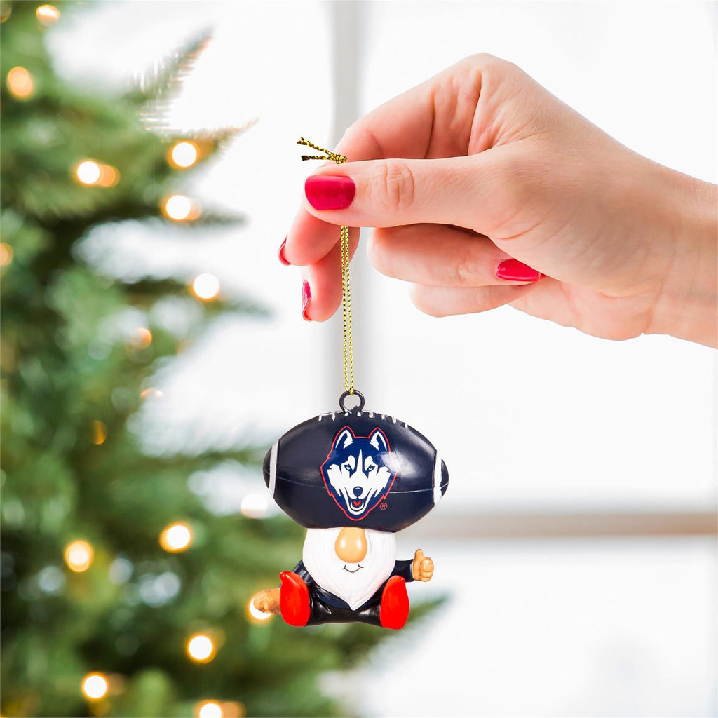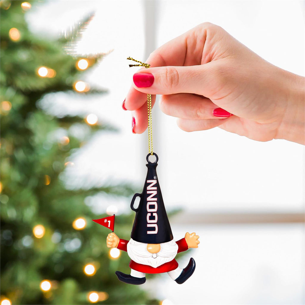 Show your team spirit with the University of Connecticut Gnome Fan Ornament. Perfect for any Huskies fan, this ornament features a playful gnome design with UConn colors and logo. Measuring 2.56 inches in length, 1.97 inches in width, and 2.95 inches in height, it's ideal for hanging on your Christmas tree or displaying in your office. Crafted from durable materials, it adds a whimsical touch to your holiday décor. Whether you're a student, alumni, or supporter, this ornament is a fun way to celebrate your favorite team.