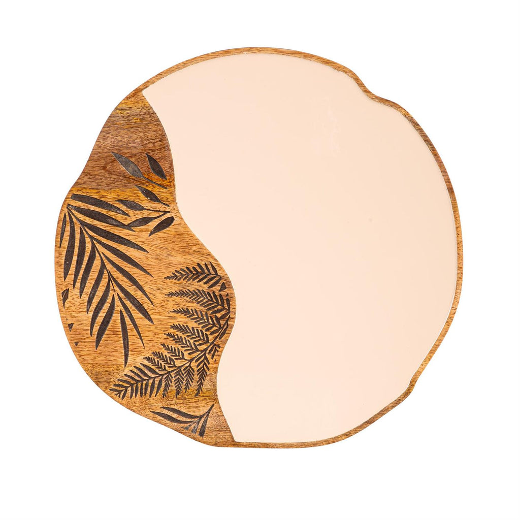 Elevate your dining experience with this 13-inch Wooden Enamel and Laser Etched Serving Board. Crafted from high-quality wood, this board showcases a unique blend of natural wood grain and smooth enamel finish. The laser-etched botanical design adds a touch of elegance, making it perfect for serving cheese, charcuterie, or appetizers. Its generous size and flat surface ensure ample space for your culinary creations. Ideal for both casual gatherings and formal occasions, this serving board is a stylish addition to any kitchen.