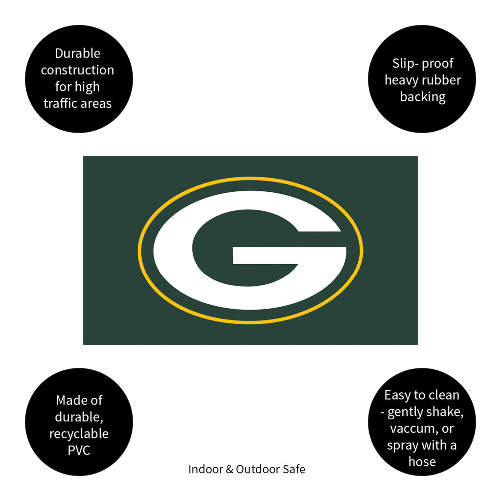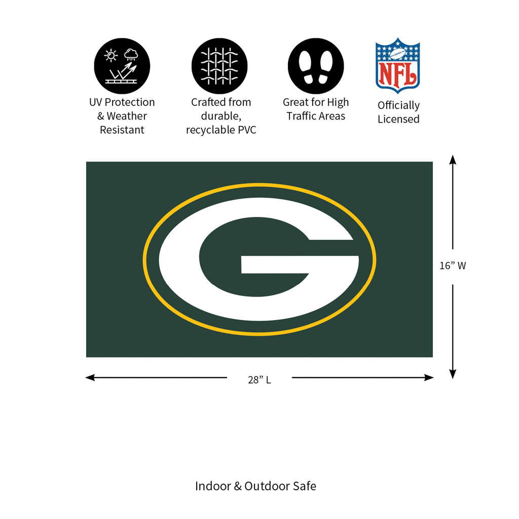 Show off your team pride with the Full Color PVC Mat featuring the iconic Green Bay Packers logo. This durable mat is perfect for any Packers fan's entryway.