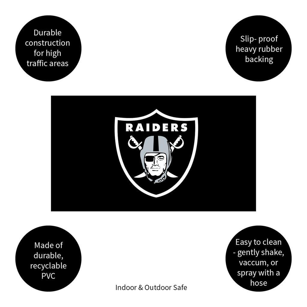 Showcase your team spirit with this Full Color PVC Mat featuring the Las Vegas Raiders logo. Perfect for adding a personal touch to your entryway.