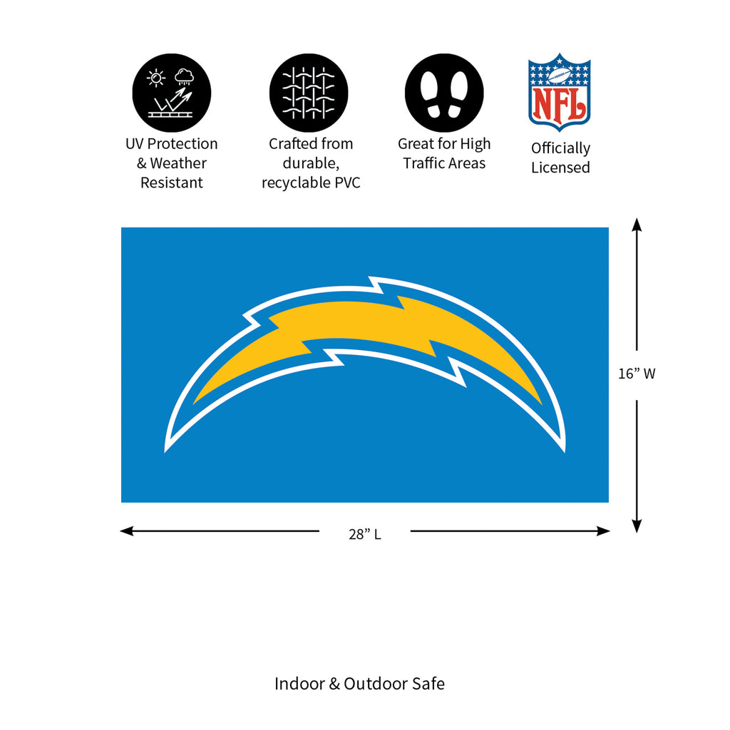 Show off your team spirit with the Full Color PVC Mat featuring the Los Angeles Chargers logo, perfect for any Chargers fan's doorstep.