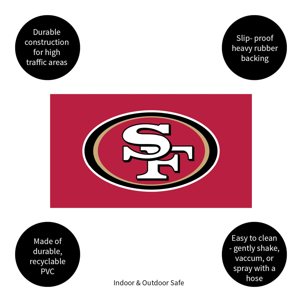 Show off your team spirit with this full-color PVC mat featuring the San Francisco 49ers logo. Perfect for any fan's entryway, this durable mat provides both style and functionality.