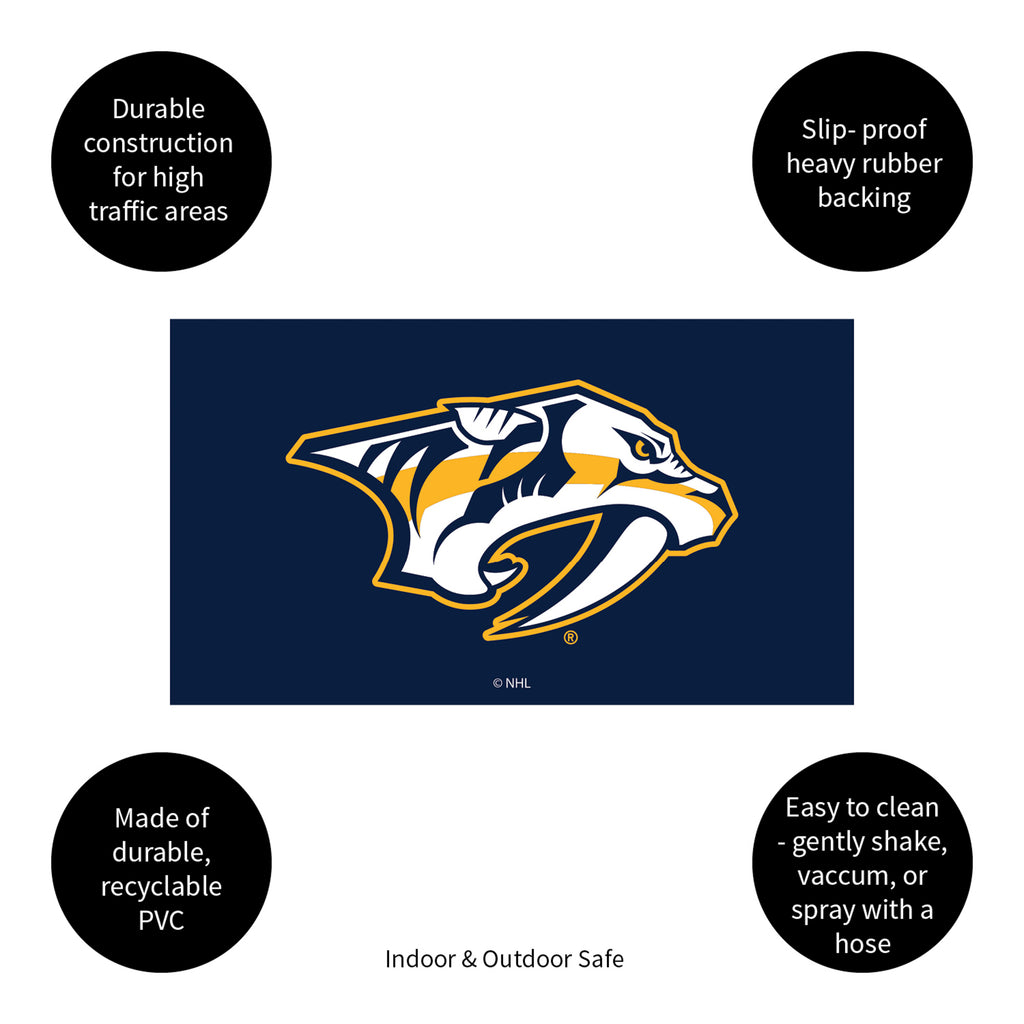 Show your team spirit with the Full Color PVC Mat featuring the Nashville Predators logo. Perfect for any fan's entryway, this mat combines vibrant design with durable construction.