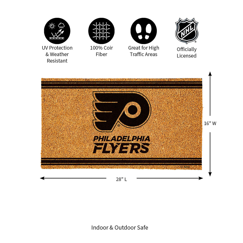Show your team spirit with this Philadelphia Flyers coir doormat, perfect for any hockey fan's entryway. Made from durable coir, it effectively traps dirt while displaying your team allegiance.