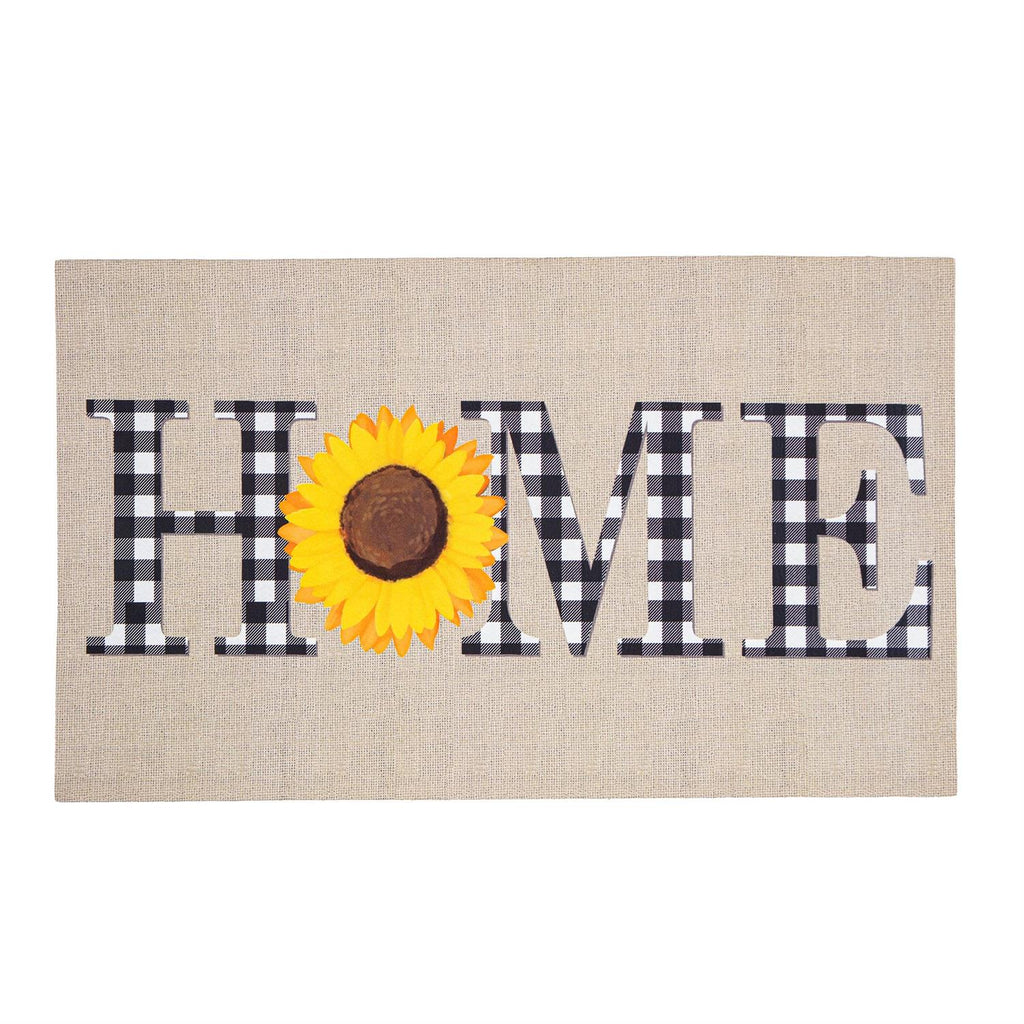 Give guests a warm welcome with this Sassafras Switch Mat. It features a beautiful sunflower with a detailed design. Crafted from heat-sublimated polyester with a rubber backing, this versatile mat is designed to fit perfectly within Evergreen's switch doormat bases. The mildew resistant mat is ideal for indoor or outdoor use and features a skid-resistant backing to help keep it in place. This welcoming mat will freshen up your stoop season after season while ensuring your home stays debris-free. For stains, simply spot clean with soap and warm water.