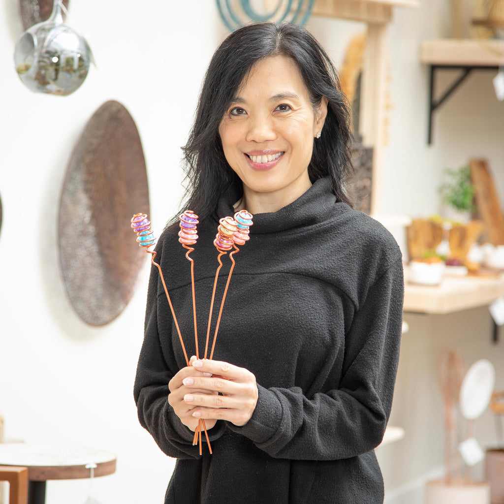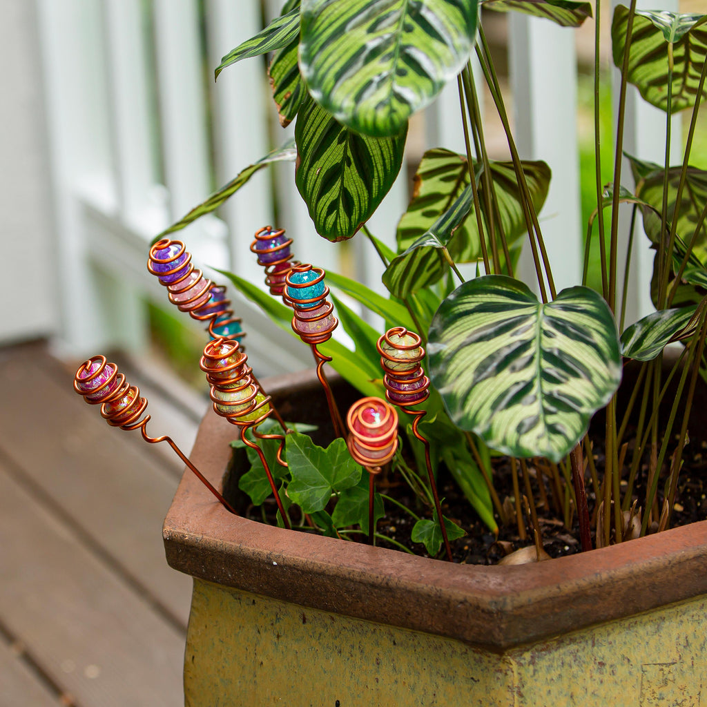 Enhance your garden with this elegant Garden of Wonder Garden Stake featuring copper wire and vibrant art glass. Perfect for adding a touch of artistry to your outdoor space.