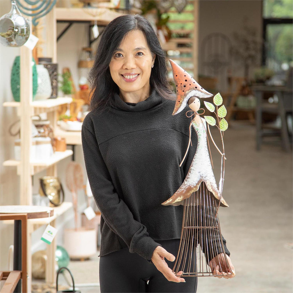 Elevate your garden's charm with the Red Metal Mushroom Fairy Statuary. Standing at 25.5 inches tall, this enchanting piece features a whimsical fairy design with a striking red mushroom hat. Crafted from durable metal, it boasts intricate details and a rustic finish that adds a touch of magic to any outdoor space. Its slender profile makes it perfect for tucking into flower beds or as a standout piece on patios and porches. Bring a fairy tale touch to your garden with this delightful statue.