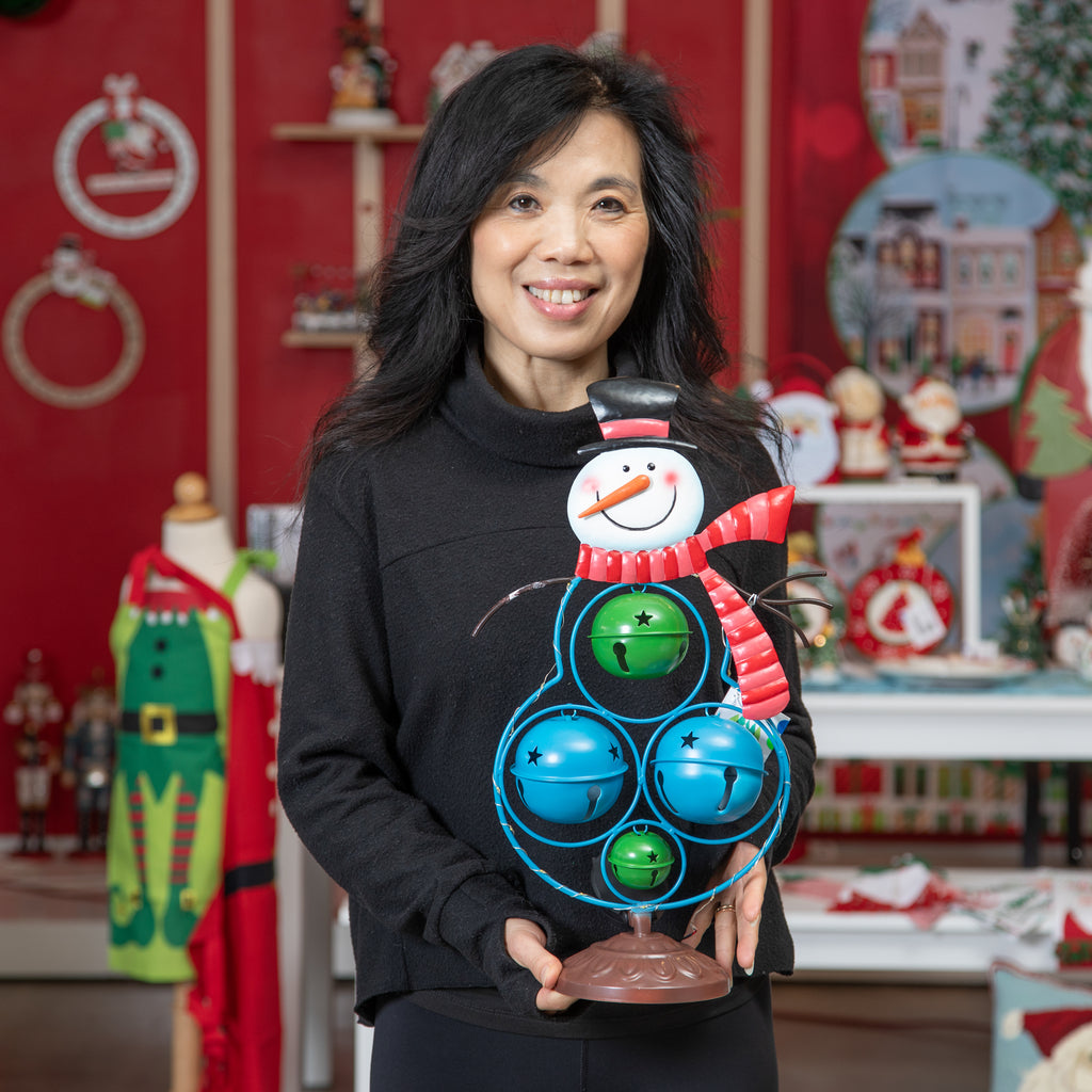 Evergreen Statuary,18"H Solar Metal Snowman With Bells Statue,5.12x11.03x18.11 Inches