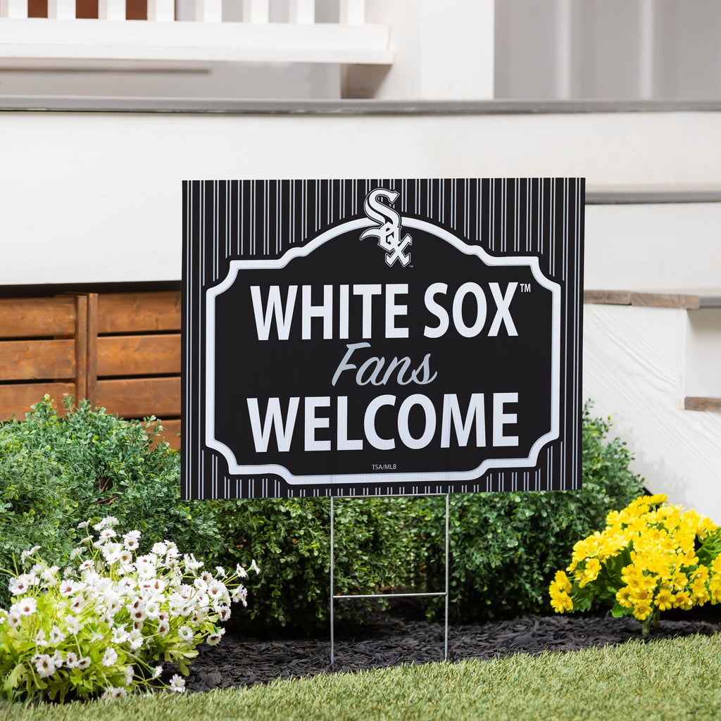 Show your team spirit with this Chicago White Sox yard sign, perfect for welcoming fans. Its durable design makes it ideal for outdoor use.
