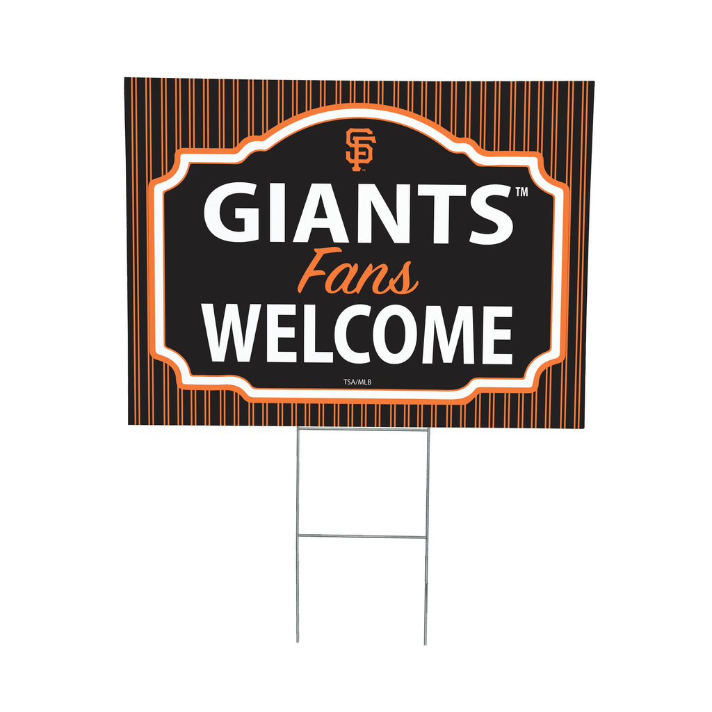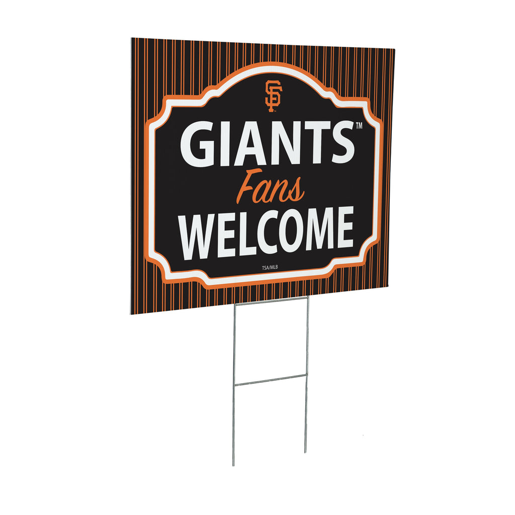 Show your team pride with the San Francisco Giants 'Fans Welcome' yard sign, perfect for adding a sporty touch to any garden or outdoor space.
