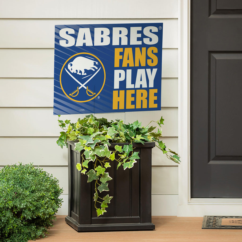 Show your team spirit with the Buffalo Sabres 'Fans Play Here' yard sign, perfect for any Sabres fan's garden or front yard.