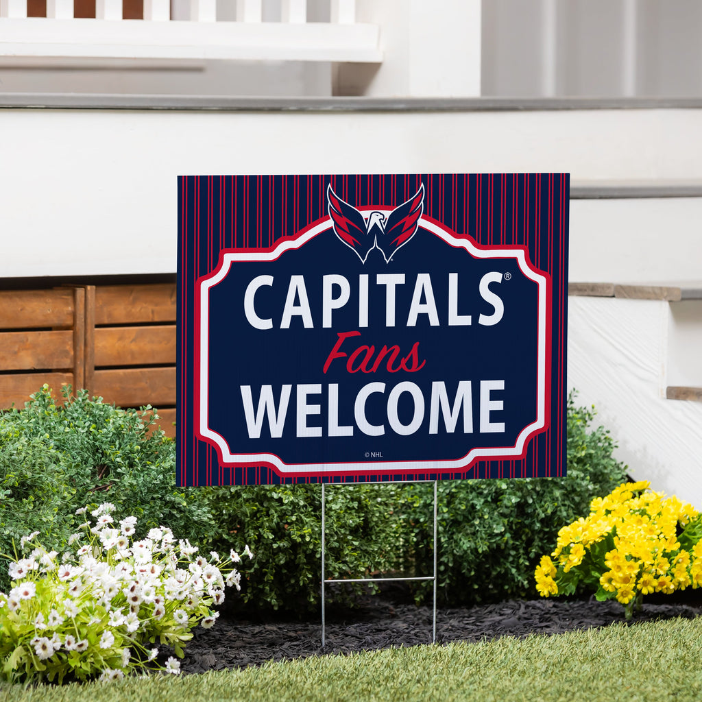 Showcase your team pride with the Washington Capitals 'Fans Welcome' yard sign, perfect for any garden or outdoor space.