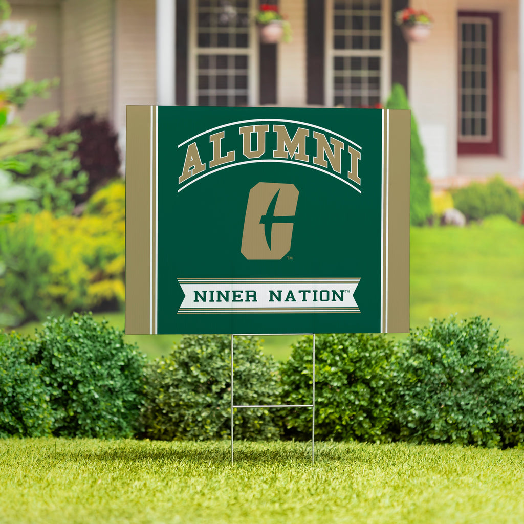 Show your school pride with this University of North Carolina at Charlotte Alumni yard sign, perfect for any garden or front yard display.