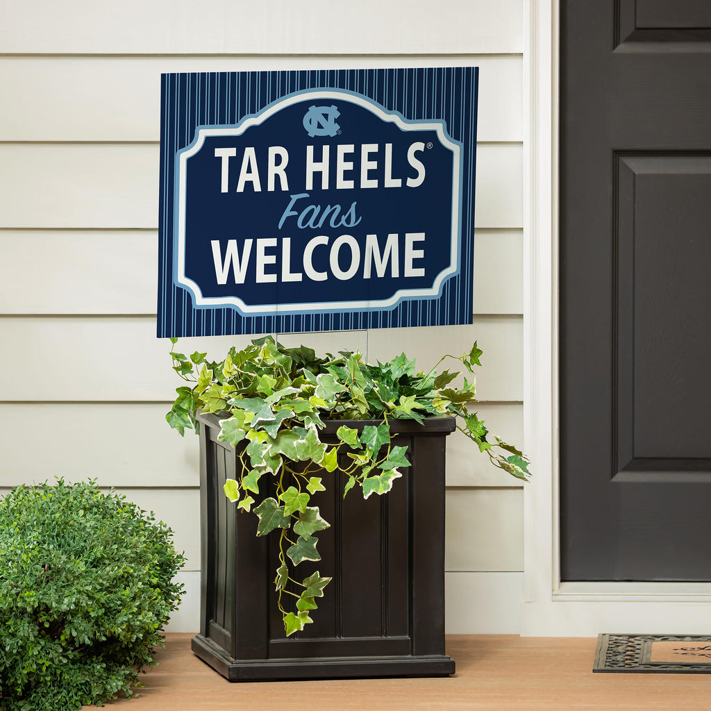 Show your support for the University of North Carolina with this welcoming yard sign, perfect for any fan's garden or outdoor space.