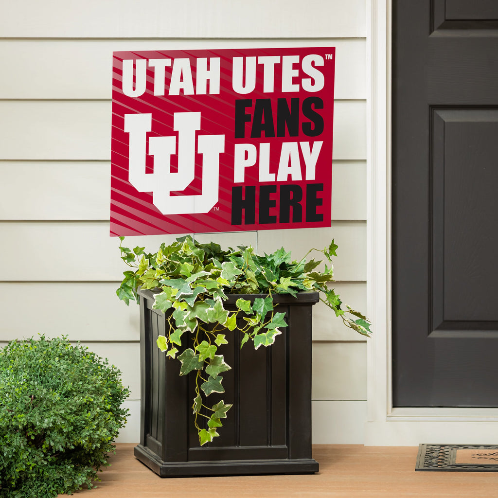 Show your team spirit with this University of Utah yard sign, perfect for any fan's garden decor. Featuring bold colors and the 'Fans Play Here' slogan, it's a great way to support the Utah Utes.