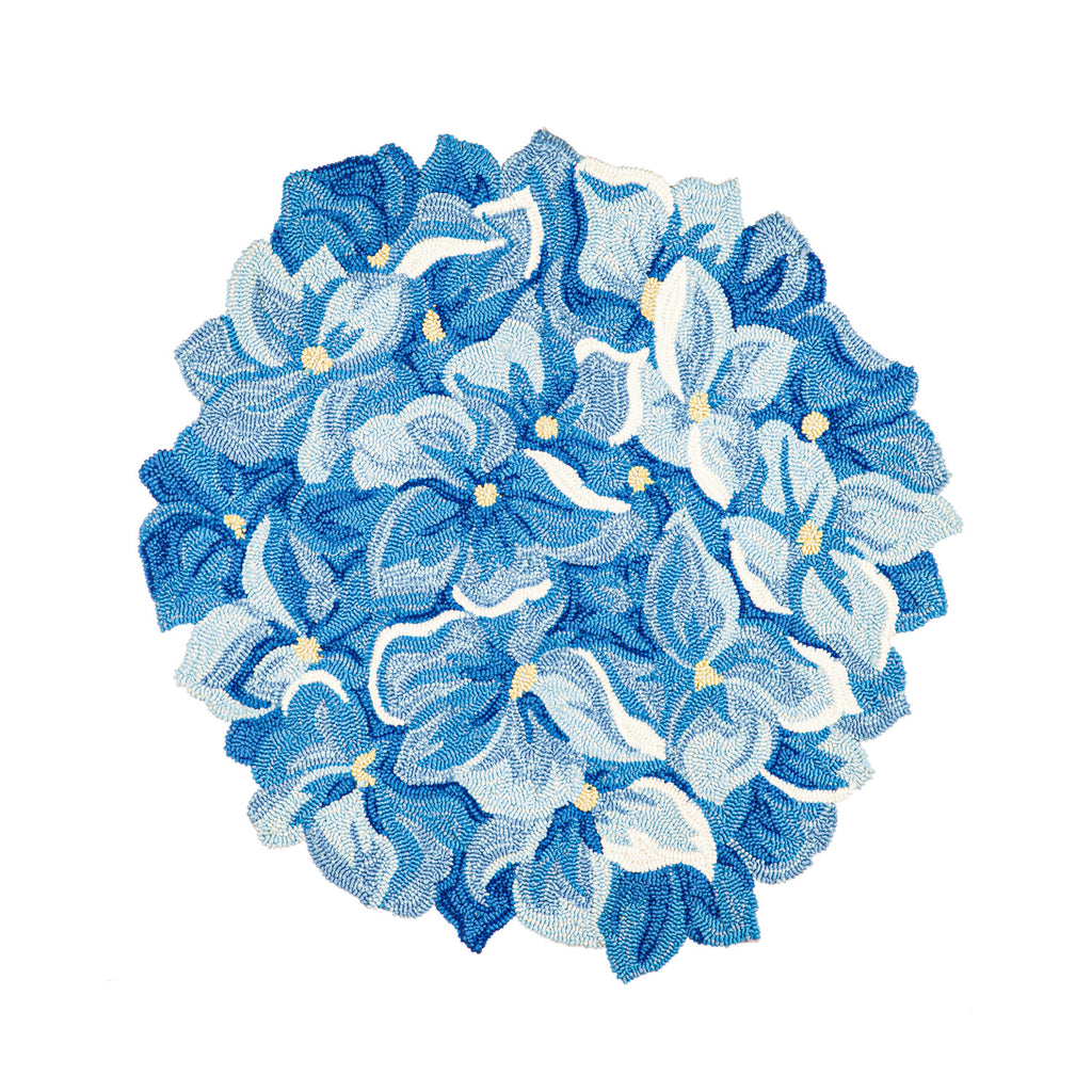 The Shaped Hooked Indoor/Outdoor Rug in Blue Hydrangea is crafted from durable materials suitable for both indoor and outdoor use. The unique shape and vibrant blue hydrangea design add a touch of floral elegance to any space. This rug is designed to withstand varying weather conditions, making it an ideal decor piece for patios, entryways, or garden areas. Its versatile functionality and eye-catching design make it a charming addition to both indoor and outdoor settings.