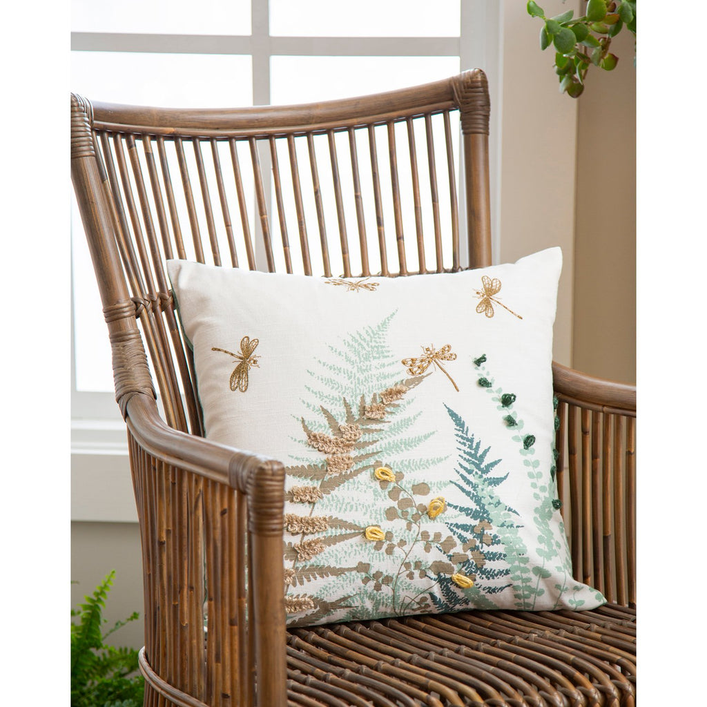 Embroidered Fern Dragonfly Decorative Pillow,4p4975