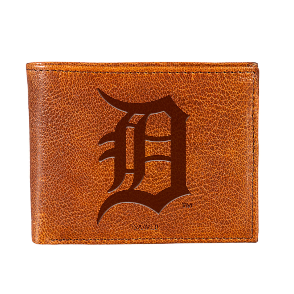 Showcase your team spirit with this Detroit Tigers embossed bi-fold wallet, crafted from 100% genuine tumbled leather. Perfect for fans who appreciate quality and style.
