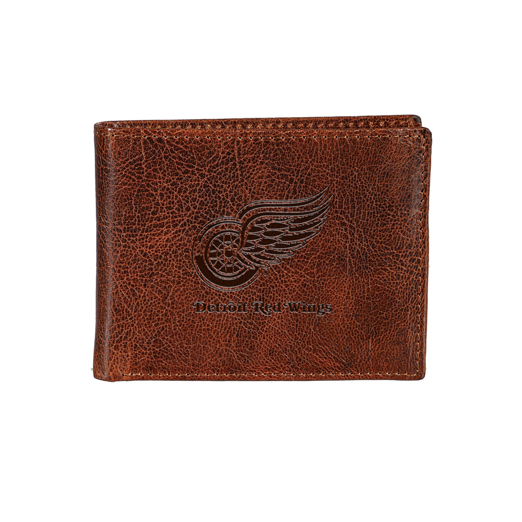 Carry your essentials in style with the Detroit Red Wings embossed passcase bi-fold wallet, crafted from 100% genuine tumbled leather.