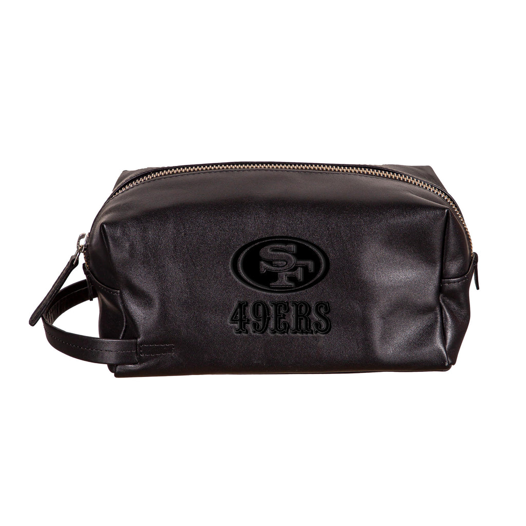 This sleek black embossed toiletry bag is perfect for San Francisco 49ers fans, combining style and functionality for travel needs.
