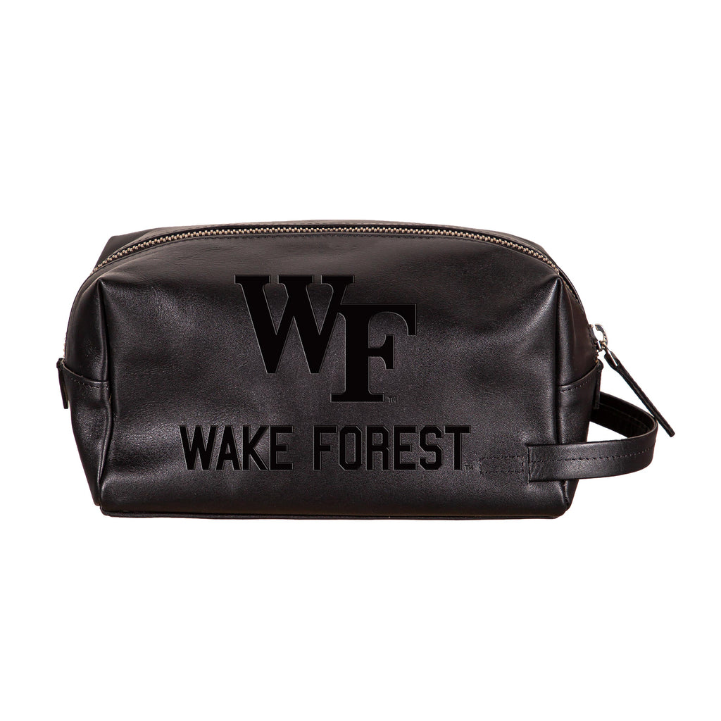 This embossed toiletry bag features the Wake Forest University logo, combining style and functionality for travel or daily use.