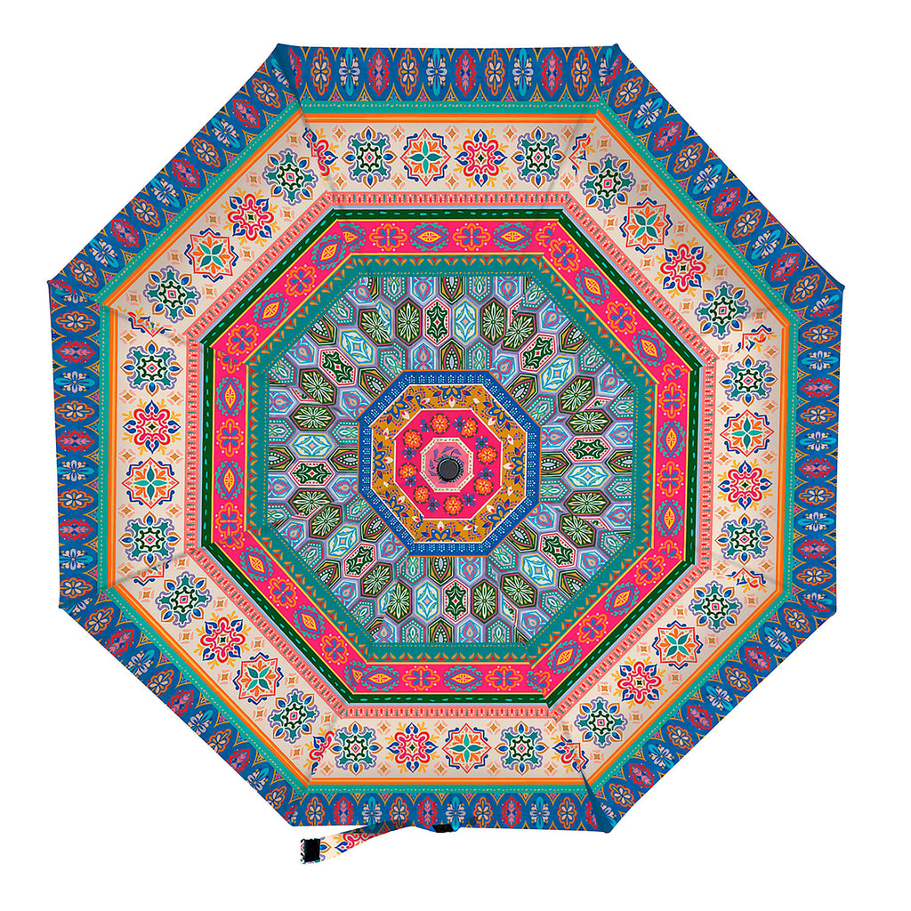 Elevate your style with the Geometric Tapestry Compact Manual Umbrella, featuring a vibrant pattern and compact design perfect for everyday use.