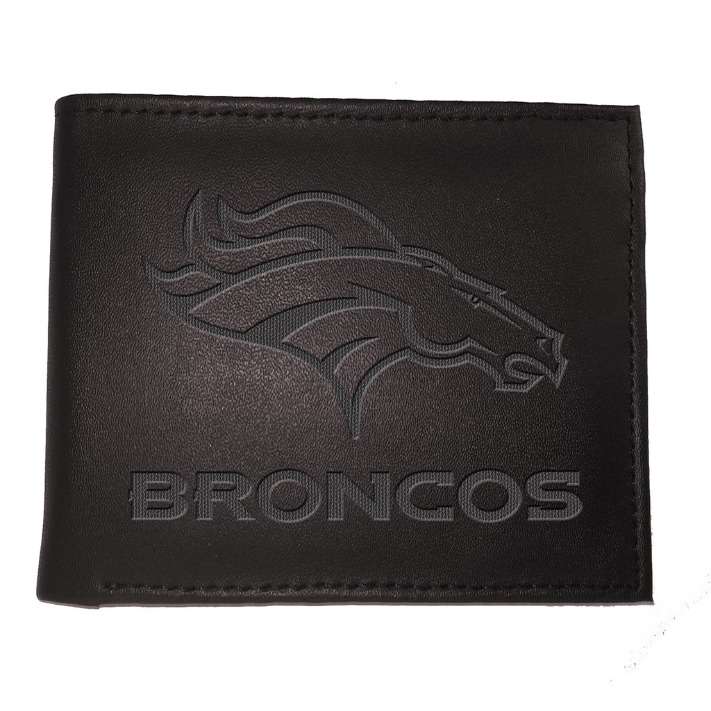 Show your Denver Broncos spirit with this sleek black bi-fold wallet. Designed for convenience and style, it's perfect for any Broncos fan.
