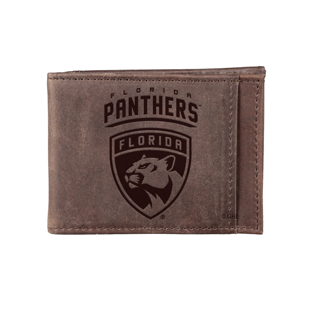 This brown Front Pocket Wallet features RFID blocking and the Florida Panthers logo, making it a stylish and secure choice for fans.