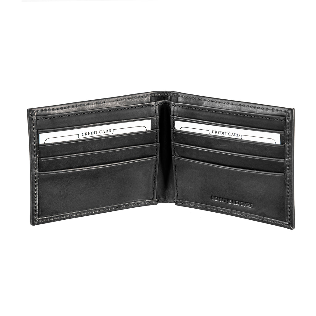 - Bi-fold design with multiple card slots for organized storage.