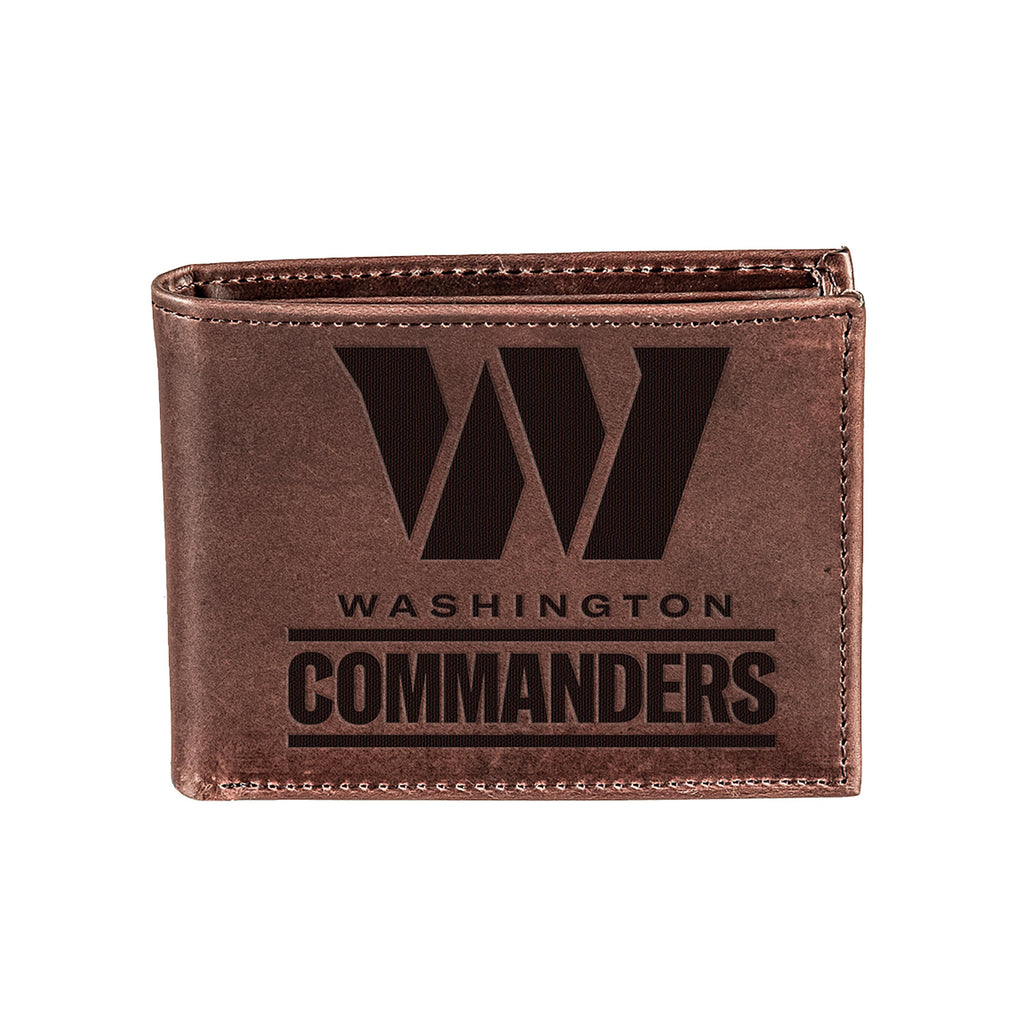 Show your team spirit with this Washington Commanders bi-fold wallet, crafted from 100% genuine leather. This stylish accessory is perfect for any fan looking to combine fashion with functionality.