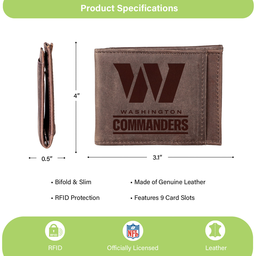 Carry your essentials securely with this brown front pocket wallet featuring RFID blocking and officially licensed Washington Commanders artwork.